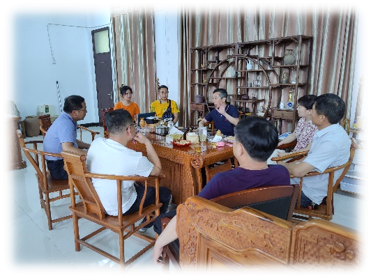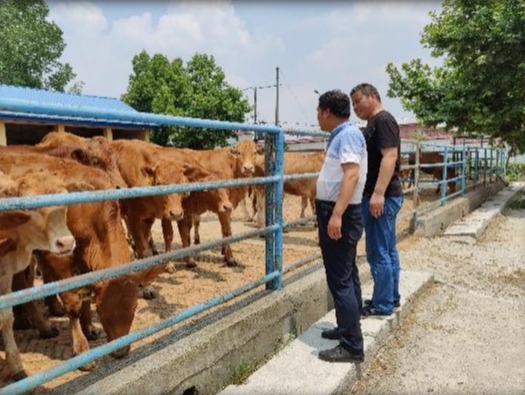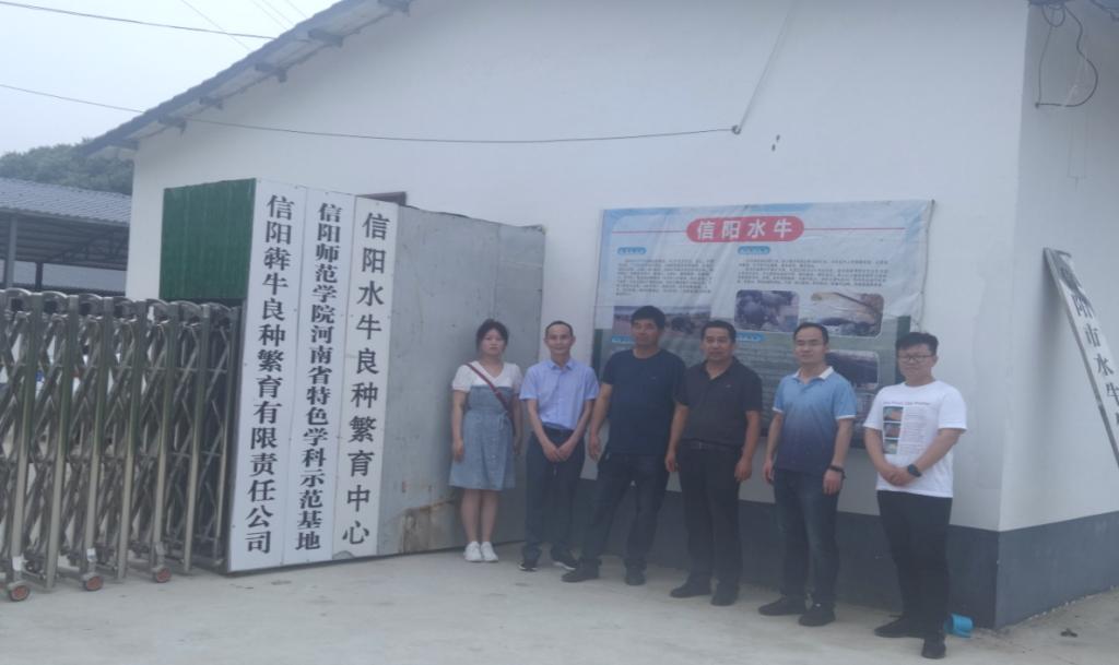河南省特色学科示范基地——信阳水牛良种繁育中心展开调研。信阳犇牛良种繁育有限责任公司是目前该地区信阳水牛养殖规模较大,养殖设施相对较完善的良种繁育场,该场主要以信阳水牛繁育及商品牛销售为主,有效的保留了信阳水牛遗传性状,可为后续研究提供了可靠依据。马云教授就目前较为关注的信阳水牛保种、杂交扩繁和商业化利用等工作与信阳犇牛良种繁育有限责任公司郑先银总经理进行了交流和商讨,郑先银总经理表示希望可以与马云教授团队加强合作,在信阳水牛种群扩繁的基础上,开发具有当地地方特色的信阳水牛肉质产品。