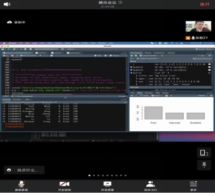 张毅副教授以“R语言在动物育种中的应用”为题,介绍了R语言的操作环境特点和程序设计方法,针对动物遗传育种领域中常见的数据类型,讲解如何利用R软件包整理储存数据,统计分析数据,解释挖掘统计结果,利用图表展示数据信息。