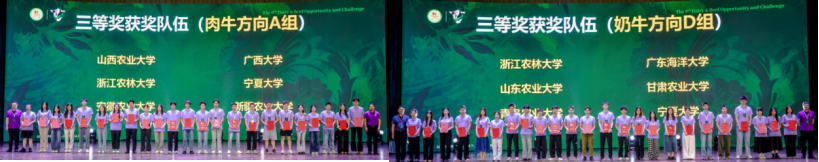 代表队展现出扎实的专业素养和出色的实践技能。在老师的指导下,参赛队伍历时3个月的准备,反复研讨、辩论和模拟演练,最终在决赛中经理论考核、定向操作、牧场评估及答辩汇报等多个环节的严格考核,成功夺得本次挑战赛的肉牛、奶牛组团体“三等奖”。