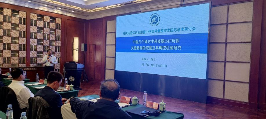 自治区反刍动物分子细胞育种重点实验室主任马云教授应邀参加会议并做了题为“中国地方牛种资源IMF沉积关键基因的挖掘及其调控机制研究”的会议报告。