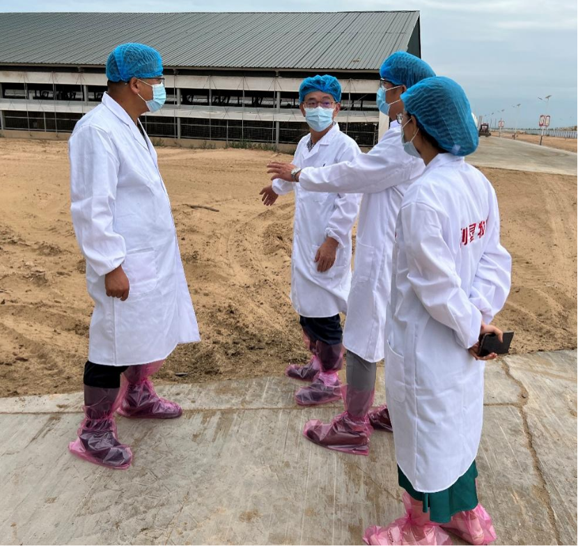 。在国家奶牛产业技术体系岗位科学家史远刚教授团队、宁夏反刍动物分子细胞育种重点实验室主任马云教授、龚振兴研究员、淡新刚副教授的带领下赴宁夏农垦乳业公司开展产业合作对接交流活动。在农垦公司总畜牧师郝峰的引领下,一行5人在宁夏利垦牧场进行了实地考察,并对共同申报东西部合作成果转化项目“规模化奶牛场床场一体化关键技术研究与应用”可能遇到的问题进行了梳理并商讨出相应的对策,最终三方达成了共识,同心协力解决宁夏乳企面临的废污处理难题。