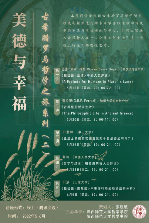 本系列讲座邀请古希腊罗马哲学研究领域有精深造诣的专家学者以该哲学传统中的美德与幸福概念为中心,引领大家进入古代哲人在人应该如何生活这一问题上所注入的理性思考。