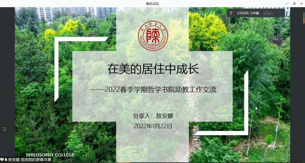 会议第二项议程由三名优秀的往届助教学长分享他们的工作经验。敖安娜、卢浩和高明昊分别分享他们在过去担任助教学长的一些经验和心得,给大家带来的许多宝贵的意见和建议。如向同学分发调查问卷了解班级同学的学习情况和感想,在课程交流群里与同学们真诚互动,以及及时分享课程相关电子学习资源并组织同学相互交流学习等等。此外,他们还分享了一些在工作中遇到的问题和困难。