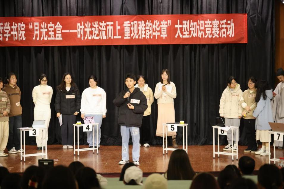 为展现中华文化的独特魅力,提高同学们的文化素养,营造博学好知的校园文化氛围,承办单位精心设置了兼具趣味性和知识性的赛制规则。比赛共分为三轮,前两轮设置综合题与抢答题,并将多种题目类型如视频题、文字题、图片题、音频题与数学题等多种形式融入其中,并做出难度区分,设置了一些考察同学们脑力与心理承受能力的“翻盘分数翻倍题”;最后一轮则由车轮战与抢答题组成,题目难度逐渐增加,现场紧张刺激的气氛也愈演愈烈。