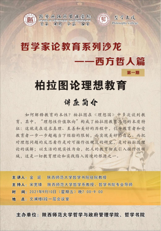 【预告·哲学家论教育系列沙龙】第一讲:柏拉图论理想教育