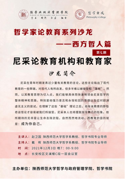 【预告•哲学家论教育系列沙龙】第七期:尼采论教育机构和教育家