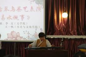 的卢海成同学和赵新宇同学根据自己的成长经历及一学期以来的书院学习与文化节活动体验,为在座的老师同学们分别分享了各自对哲学教育与学生专业成长关系这一话题的独到见解和心得。接下来,来自国际商扑克牌游戏