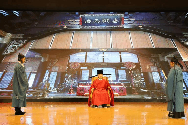 儒家素来学而优则仕,而后张载步入政治时代,第三幕《文德殿神宗问对治道 政事堂群臣抗言新政》以文德殿与政事堂两厢场景,三轮回合,分别呈现面神宗谈治道之要、会王安石辩祖宗之法,离神宗确立国是的历史场景。此幕背景宏大,神宗一朝众士大夫纵有秩序重建之志,却难得君行道之机,而张载面临此番情景,选择退守横渠,修辞立诚,也由此奠定了他在中国思想史上开宗立派的历史地位。