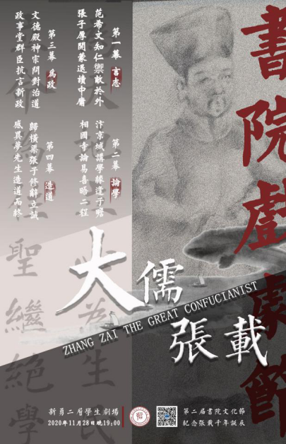 本场话剧别开生面的以孔子、孟子、程颢、范仲淹、王安石、张载、朱熹、王阳明、现代学者等人的自白作为串场,贯穿于幕与幕之间,以示道统之所传,彰显张载在确立儒家地位中承上启下的作用。同时,本剧还以舞蹈的方式呈现张载异梦,独具特色,梦中的张载得见孔圣,示其正蒙,得接道统。