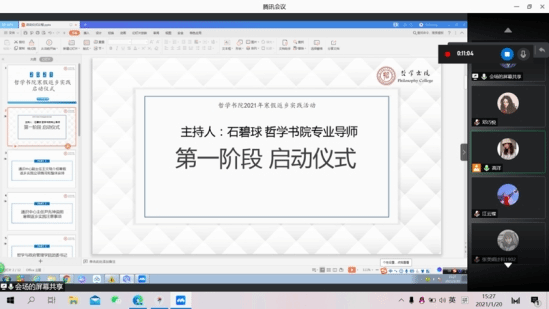 最后,石碧球做总结,他希望全体同学深刻领会此次寒假社会实践的主题,着眼家乡,回到家乡,寻找家乡,从生活世界出发,在“家”与“乡”日益分离的今天带着对问题的反思和回答与家乡重新建立起亲缘关系,以在外学子的社会责任感、融入感回馈家乡,为自己生活成长的一方土地贡献智慧力量。