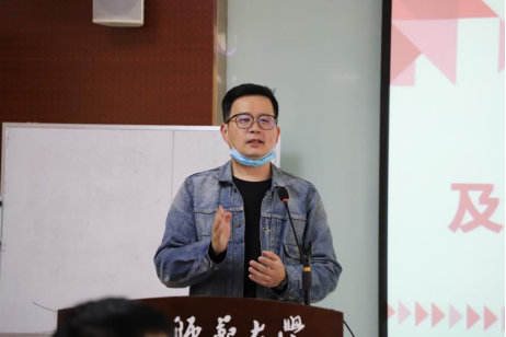 团委书记王顥老师对大学生社会实践及创新创业类项目和赛事进行系统解读。王颢老师首先强调了大学生参加创新创业类项目对个人学习能力、科研能力和组织协调能力等方面的重要意义,说明了对扑克牌游戏