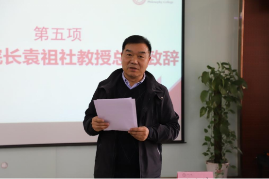 院长袁祖社教授对本次会议进行总结。袁院长对各项目团队在寒假两个多月期间对家乡各方面调研取得成功表示肯定,并代表书院对此次寒假返乡实践的相关负责老师、两位主题分享的同学与各实践团队同学们的付出表示衷心感谢,他鼓励同学们再接再厉,传承书院优秀传统,挥洒热情与汗水,用满腔热血彰显出筑梦新时代的青春力量,在理论转化成实践的探索中再创佳绩。