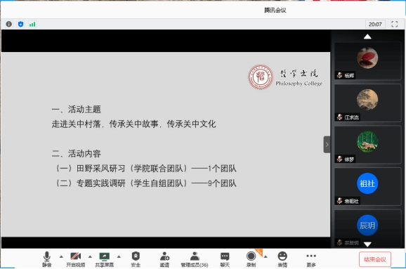 尹兆坤老师提出了书院对“为学”与“为人”的重要思考,并说明了暑期实践的注意事项。他强调安全问题是首要问题,在此基础上希望大家有所学、有所获。随后,高洋老师从网上报备与新闻宣传、阶段性要求、财务管理等方面的具体问题做了进一步补充。