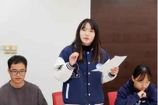 在主席的简单介绍后,上午的两场比赛正式开始。第一场的辩题是“参与内卷/选择躺平更可取”。作为本场比赛的反方队伍,“小鲨鱼战队”的观点是参与内卷更可取。他们提出,一方面,参与内卷有助于个人成长,更重要的是,参与内卷可以为社会发展和变革积蓄力量。“参与内卷的人往往比起选择躺平的能通过积极拼搏为自身争取更多资源,掌握更多社会话语权。对那些同样致力于社会变革的人来说,拥有资源的成功人士会比那些有上顿没下顿的三和大神更有能力推动各行各业转型,改变社会困境。”反方一辩如此讲道。