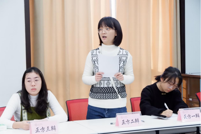 在你来我往的交锋中,双方辩手针锋相对。张海满老师点评道:“这是一场精彩绝伦的比赛,辩题本身的独特性使得辩论更加困难,而反方能够跳出讨论框架,将辩论变得更具针对性,极大的削弱了正方的力量,使正方的辩论陷入僵局。”