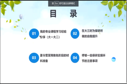 范思韵同学首先向参会同学们介绍了此次分享会的两位特邀嘉宾并预祝本次分享会成功举办。简短的开场白过后是三位保研成功学子的个人分享环节。