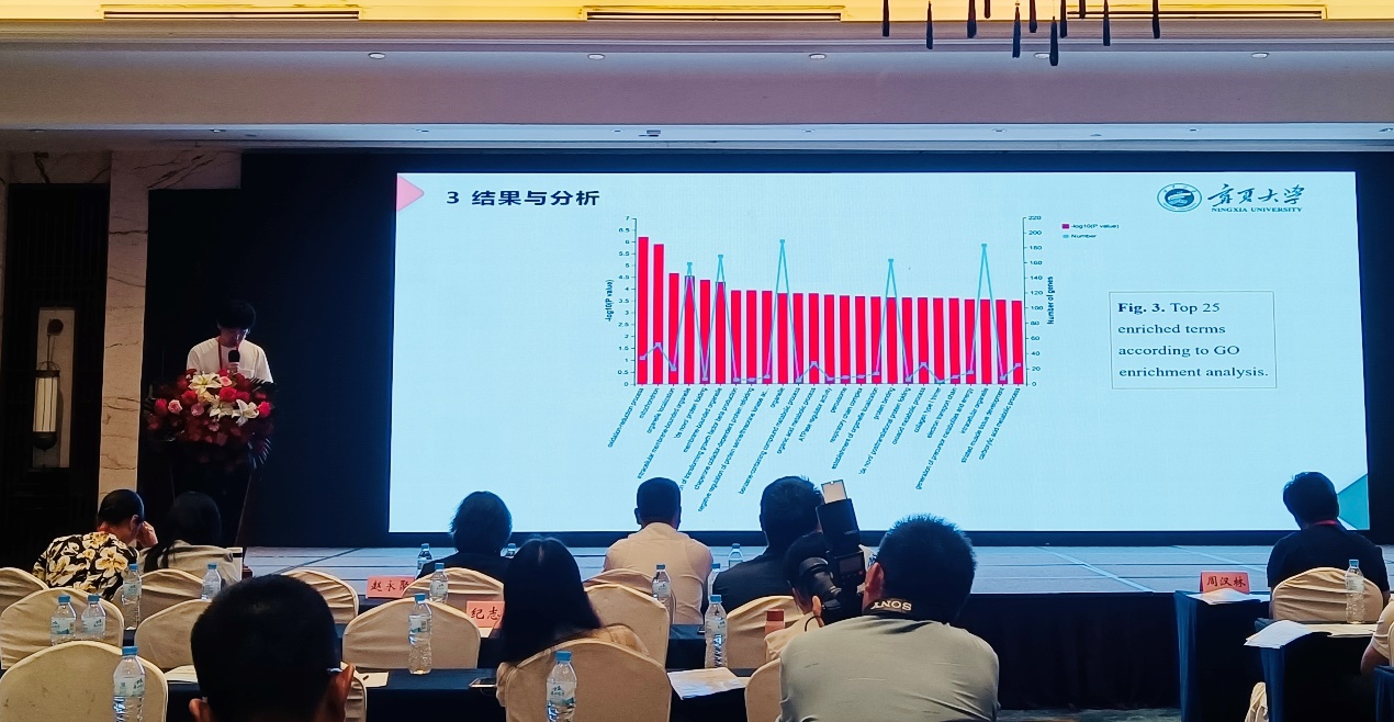 周玉香教授团队博士研究生高昌鹏作了题为《基于转录组分析添加裂殖壶藻对滩羊肉品质的影响》的学术报告。此次会议展示了我国羊产业的最新技术成果,对提升青年学者的学术水平和创新能力起到了深远影响。