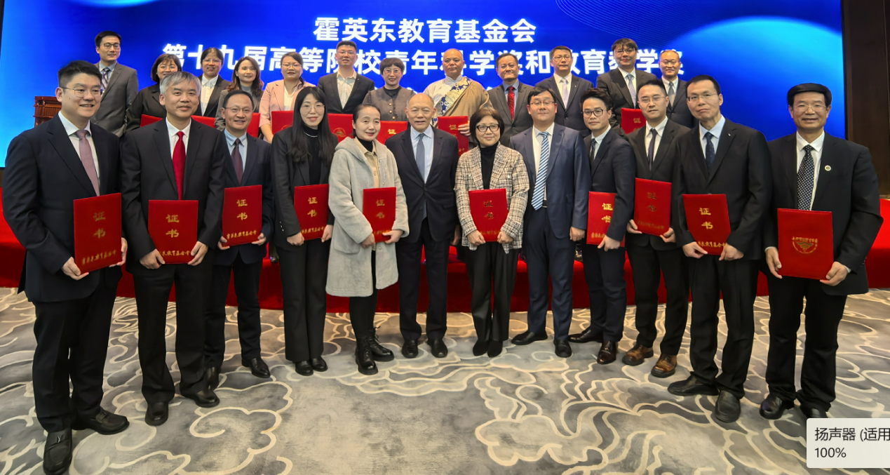 12 月 26 日下午,霍英东教育基金会第 19 届高等院校青年科学奖及教育教学奖颁奖大会在南京大学隆重举行。教育部副部长吴岩,南京大学党委书记谭铁牛、校长谈哲敏,霍英东教育基金会理事长霍震寰、副理事长霍震霆等出席大会,并为获奖教师代表颁奖。教育部港澳台事务办公室主任杨丹主持大会。教育部副部长吴岩发表讲话,他指出,霍英东教育基金会成立 38 年来,为国家高等教育事业发展作出了积极贡献,希望基金会继承和发扬霍英东先生的爱国情怀,为建设现代化教育强国作出更大贡献,同时希望获奖教师践行教育家精神,勇攀科学高峰。
