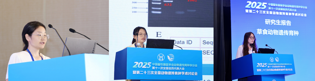 研究生共投递会议墙报16篇,3名研究生被遴选作分会场报告。其中,马云教授指导的博士研究生杨梦丽,王兴平教授指导的博士研究生豆雅晴,李新海副教授指导的硕士研究生王思宇分别在功能基因组与生物技术、草食动物遗传育种分会场作口头汇报。