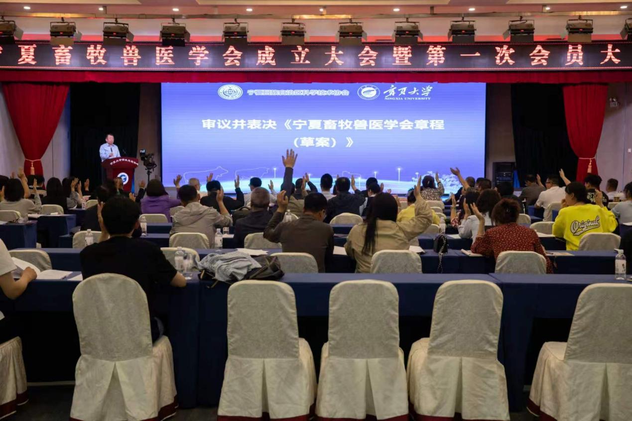 教授许立华主持第一次会员大会。会议听取并审议通过了《宁夏畜牧兽医学会筹备工作报告》《宁夏畜牧兽医学会章程(草案)》《宁夏畜牧兽医学会理事会理事选举办法(草案)》《宁夏畜牧兽医学会监事会制度(草案)》及《宁夏畜牧兽医学会会费标准及管理办法(草案)》。会议提名并表决产生了总监票人、监票人、计票人。经无记名投票,选举产生宁夏畜牧兽医学会第一届理事会理事和监事会监事。