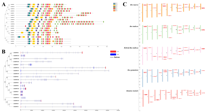 ADAMTS基因家族的系统发育关系、基因结构、染色体分布