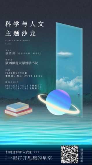 一向秉持学科融通的精神,注重科学教育与人文素养,在2021-2022春季学期即将开设的“西方科学与哲学思维”、“西方美术与哲学思潮”等课程中,我们也即将展开不同学科文化的交流碰撞。我们可以发现:目前流行的许多相关探讨与实践,往往缺乏深厚的学理基础和理论指导,如对科学史发展及其哲学基础不熟悉、对科学定义过于狭隘(只限于近代自然科学这一科学形态)、对人文教育作用的认识不明晰等等,使当前的跨学科研究、通识教育陷入许多误区和困境。本沙龙则将正本清源,以哲学这一知识母体作引导,梳理科学史脉络,把握各大科学形态的源流,阐释人文精神与人文教育的意义,探讨科学与人文之关系,让沙龙成果滋养我们未来的学术研究与教育实践。