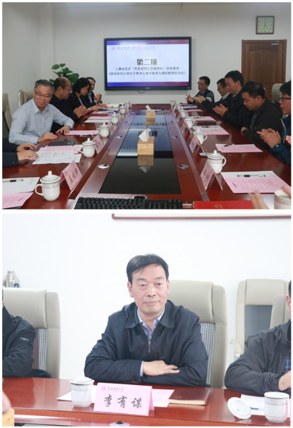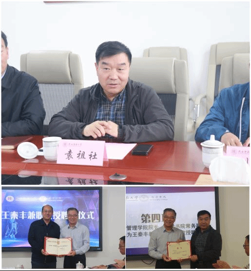 关于聘请王秦丰教授为兼职教授的决定》。李磊为王秦丰教授颁发了兼职教授聘书。袁祖社为王秦丰教授颁发了扑克牌游戏