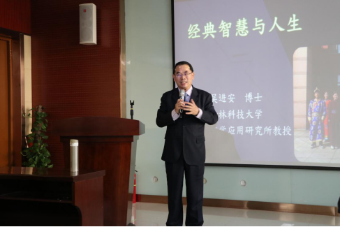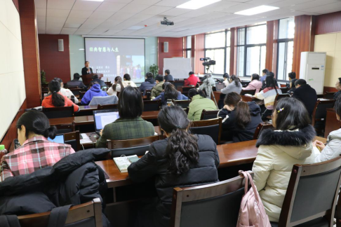 那么,经典可以带给我们什么?吴老师给出自己思考的结晶:读经典可以运转自己的命,找寻成功的磁场,与人为善,不断求知,改变自己的身分和视野。吴老师以生动风趣的语言讲述了文化名人胡适的故事,并结合自身的事迹阐述道经典带给人的影响可以表现为人品和格调,这是经典作用于人的价值世界的效用。