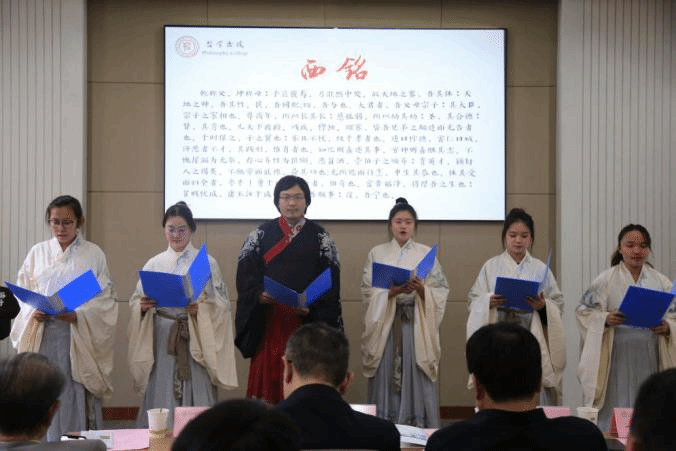 在书院学子合诵关学宗师张载《西铭》《东铭》的和缓书声中,开幕式进入尾声。袁祖社院长最后发表总结致辞,他指出,本届书院文化节借“世界哲学日”的契机,搭建与传统对话的文化平台,全面展示书院的理念和风采。期待文化节期间多姿多彩的活动,能够带着师生领悟和感受哲学的魅力,体验哲学在生活中的独特意义。