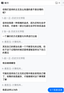 第一次参加书院的茶叙,真的是感触颇深。我们在线上自由地讨论自己在日常生活或学习中遇到的问题和看法,同时可以真正的理性地从哲学的角度对这些问题进行剖析与深挖,这极大地锻炼了我们的逻辑思辨能力。这样的茶叙也是我们了解他人,互动交友的途径。