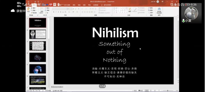 的简红晓同学从历史的角度带人们追溯虚无主义的起源和发展,并且详细介绍了尼采有关虚无主义的观点。