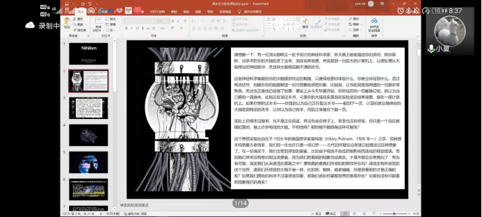 的陈钰涵从自己的专业和影视作品Rick and Morty出发,为大家介绍了她眼中的生命意义和虚无主义。