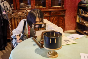 英国是工业革命的源头,现代文明发源地之一,为深入了解现代性的起源,团队实地走访了剑桥惠普尔科学史博物馆(Whipple Museum of the History of Science)。惠普尔科学史博物馆是剑桥大学重要的科学类博物馆之一,同学们热情高昂,仔细了解馆内所展出的近代科学教学仪器和研究设备,自由探索科学原理。通过本次参观,同学们理解了科学发展的历程和科学的本质,对现代性视域中西互鉴的科学发展史有了更为深刻的体悟。