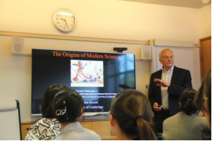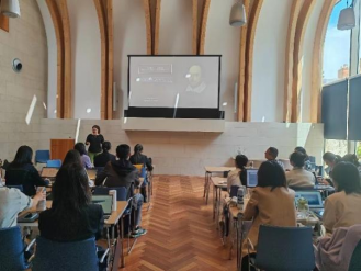 除此之外,本次访学团队的主题还包含了“现代性的探源”,基于此,访学团队深入学习了《近代科学的起源》《英国近代经济政治的起源》《现代西方科学与哲学思想》《近代认识论的兴起》四门课程,课程从政治、经济、科学、哲学思想等多个角度切入,加深了同学们对于英国发展历史和现状的了解。《近代科学的起源》涵盖了科学革命、19世纪科学的新空间、工业与大学、科学的新尺度以及今天的科学生活等内容,梳理了科学发展的脉络。《英国近代经济政治的起源》主要讲述了英国的政治经济制度,梳理了目前英国经济制度的益处和困境。《现代西方科学与哲学思想》从卡尔·波普尔和托马斯·库恩关于科学进步的两种观点入手,讲解了关于现代西方科学理论的若干问题,Marina教授强调同学们要深入思考两位学者对技术在科学进步中作用的观点。《近代认识论的兴起》从“什么是认识论”出发,重点讲解了怀疑论和唯我论的相关内容,并引导同学们思考他心问题的解决路径和怀疑论存在的意义。