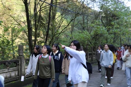 太平森林公园所处地貌为秦岭中山地。整个区域高差悬殊、峭壁林立、峰峦叠峰、沟谷连绵、多瀑布、急流和险滩,这里多重地貌维度,是高效了解秦岭地貌的完美课堂。在老师的带领下,师生们 从山脚下的往上走,淙淙清溪让同学们的心情顿感愉悦。过了清水岔,攀着石阶,钟潭瀑布映入眼帘。崎岖的山路总比平坦的马路更有挑战,伏牛滩、神龟望峰、石门、一线天、彩虹瀑布、烟霞瀑布、龙口飞瀑等30多个景点,徒步体验活动不仅提高师生们团结协作的能力,也开启了对地理世界的奇幻冒险。