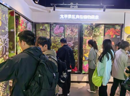 经过一个小时的车程,游学团队抵达秦岭太平山国家森林公园。首先团队来到了太平山森林公园的科普展览馆。迈进展览馆,师生们仿佛进入了一个神奇的世界。翠绿的植被、多姿多彩的花朵、灵动的小动物,它们在展品中栩栩如生地展现出来,让我们惊叹大自然的鬼斧神工。沉浸在展览馆的海洋中,同学们目睹了大自然的奇迹,感受着生命的力量,在栩栩如生的展品中汲取知识的营养。