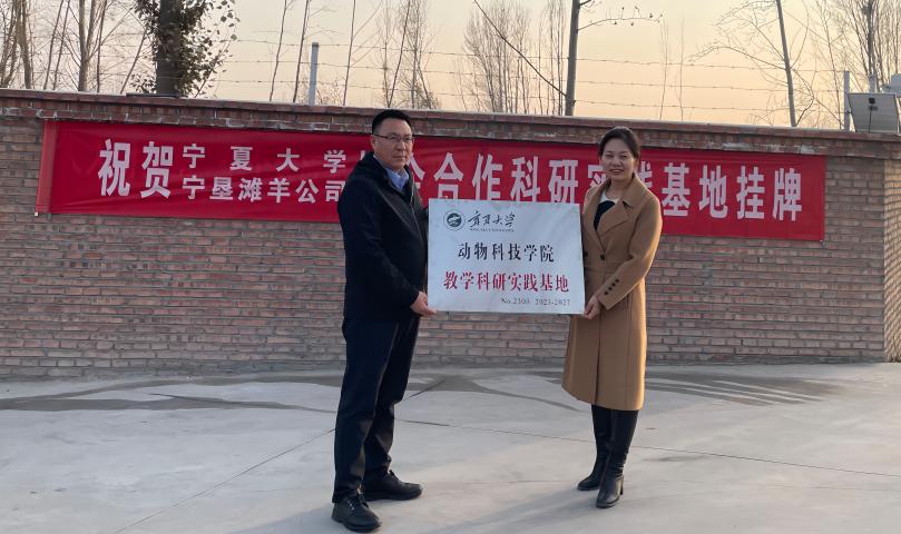 2023年11月21日下午,“扑克牌游戏 校外教学科研实践基地”挂牌仪式于宁夏农垦畜牧所、滩羊产业有限公司举行。扑克牌游戏 郑燕玲书记、励行书院张强书记、扑克牌游戏 徐晓锋副院长,宁夏农垦畜牧所、滩羊产业有限公司徐军书记、张胜辉总经理、刘自新副总经理、徐浙龙副总经理、马宝林副总经理、云华总经理助理、梅宁安部长等领导及扑克牌游戏 教师代表张娟教授、张莉副教授、李兰兰博士和学生代表胡佳欢参加了此次活动。